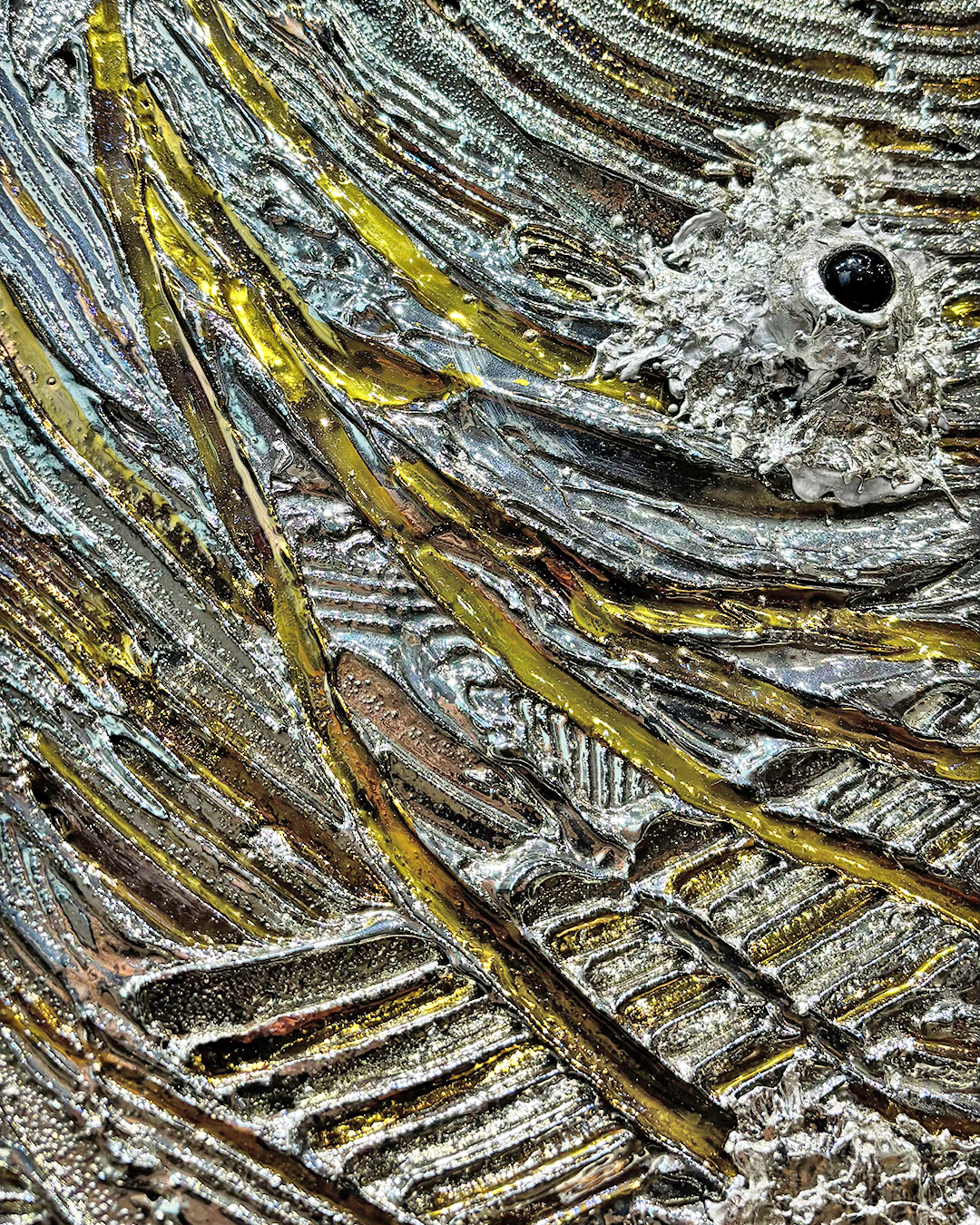 The use of a special 24-karat gold paint lends the surface a quiet radiance that shifts subtly with changes in light and viewing angle, creating a layered interplay of stillness and movement. This nuanced luminosity invites contemplation, allowing the work to reveal new expressions over time. Designed to resonate within moments of calm and curated spaces, the piece offers a refined presence that gently draws the viewer’s gaze and enriches the surrounding atmosphere.