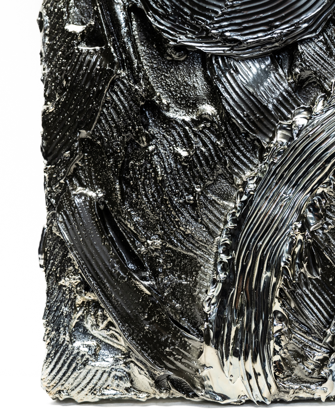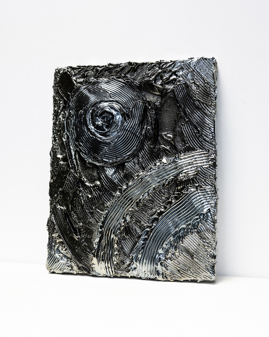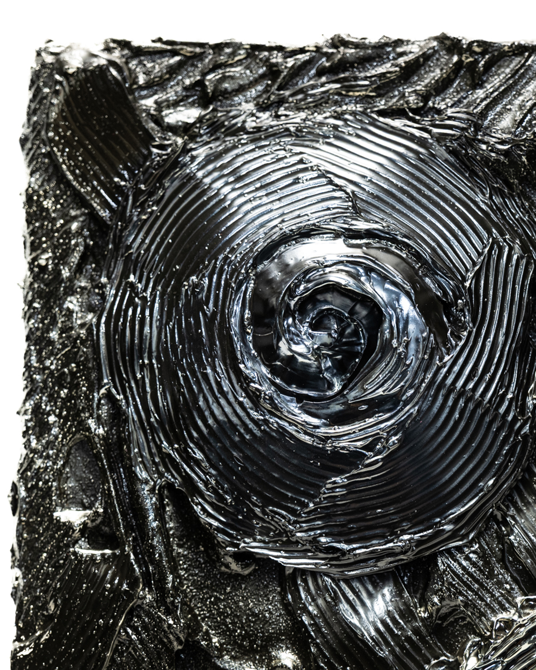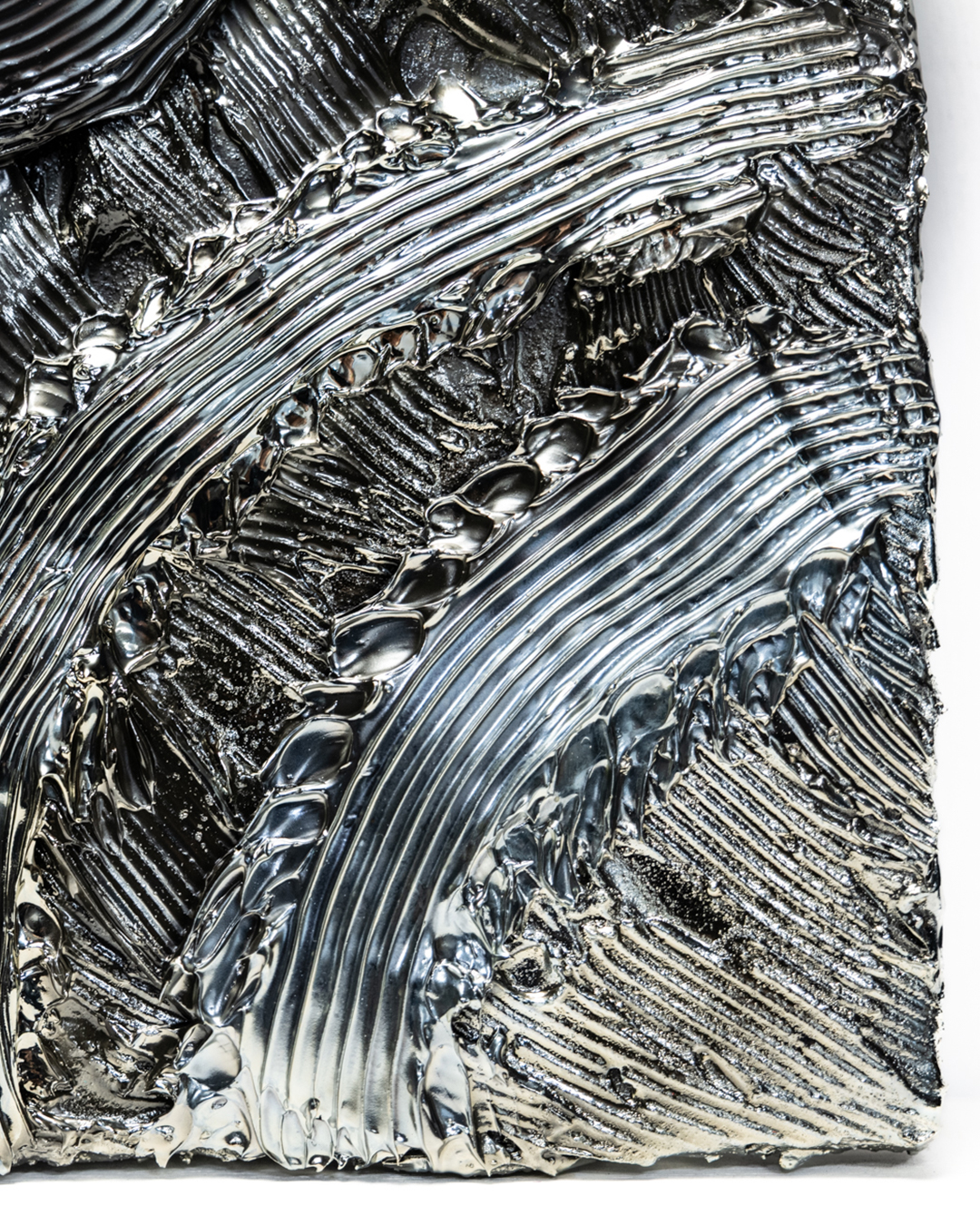 This work marks the first introduction of an F3 size within the UNDULATION series. While more approachable in scale compared to previous formats, it embodies an evolved expression of MANDALA throughout, condensing a fusion of inner imagery into a single composition. The symbolic spiral motifs guide the viewer’s gaze toward inner stillness, while the flowing lines evoke a breath expanding outward, allowing stillness and movement to resonate together across the canvas.
