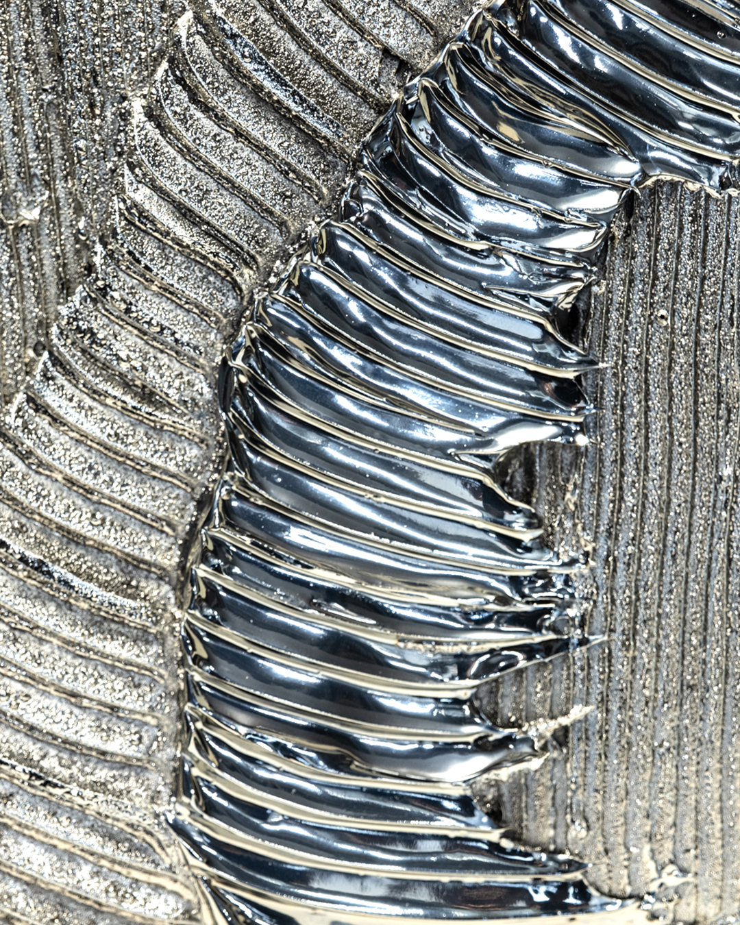 This piece is part of the WAVE series and boldly incorporates the colors of the Spanish flag: vibrant red and warm Guardia yellow. The undulating, wave-like forms intertwine these hues, creating a dynamic visual that changes expression depending on the angle of light and the viewer’s perspective.